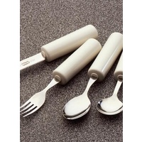 This very popular cutlery combines high quality stainless steel utensils that are mounted into lightweight built up plastic handle that are ideal for those with a weak or painful grip. The built up handles are cylindrical in shape to further aid with gripping and use. Where the handle joins the metal, the knife is fully sealed, so there are no cracks or gaps that could otherwise trap moisture, dirt or bacteria.