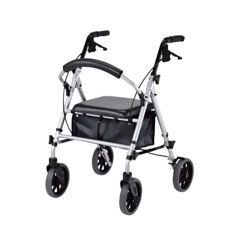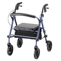 Easy to use, lightweight, height adjustable, folding rollator has four 8" castors with a simple to operate locking handle brake mechanism. Available in Metallic green or burgundy, this walker folds easily for storage and transport